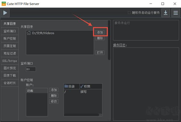Cute Http File Server(文件共享软件)是一款功能强悍的局域网文件共享软件,传输速度可以达到30M/s,是免费的HTTP协议文件共享服务器。支持电脑、手机、平板还有游戏机等各类设备访问,其他设备只需要通过IP地址,就能实现文件下载、上传和在线秒播。软件绿色安全无病毒,不需要安装,打开就能直接使用。需要的朋友快来下载试试吧!