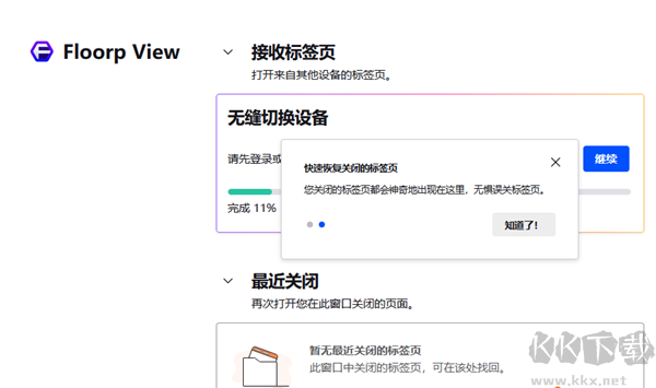 2、快速恢复关闭的标签页。您关闭的标签页都会神奇地出现在这里,无惧误关标签页。