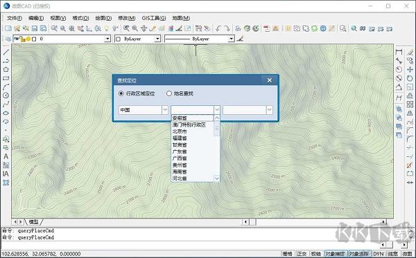 点击“GIS工具\查找定位”菜单会显示“查找定位”对话框,在该对话框中,可以通过行政区域定位和地名查找的方式进行查询定位。