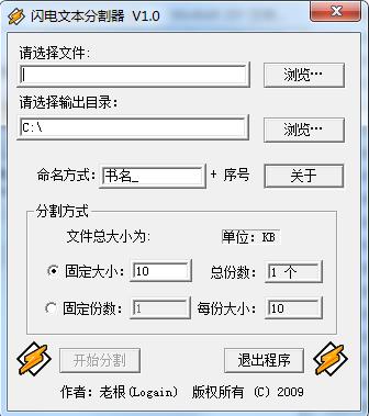 闪电TXT文件分割器是一款可以将TXT文件按要求分割为多个TXT的小工具,可根据自定义的分数、自定义大小进行分割,并且支持自定义命名,非常的实用。