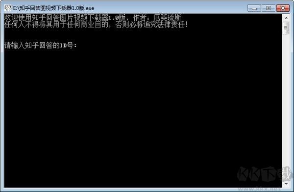 2、运行之后会显示如下图所示的操作界面,界面中会提示我们输入知乎回答的ID号(一般是网址最后面的那串数字);