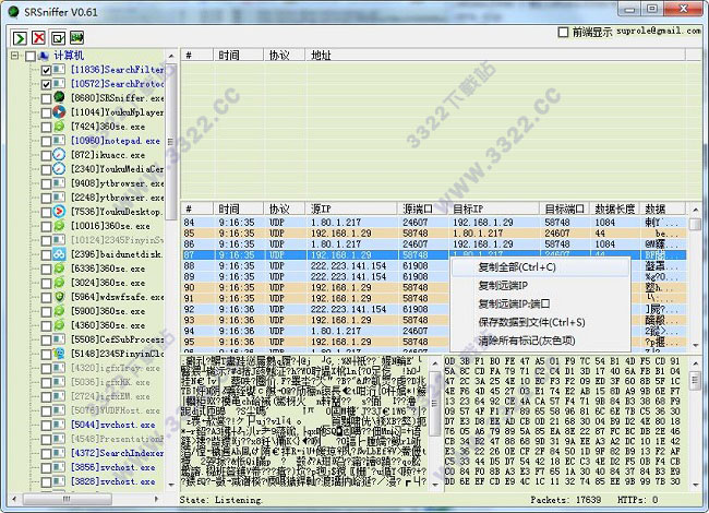 SRSniffer是什么?SRSniffer有什么作用呢?kkx先给大家分享的SRSniffer是一款非常好用的网络嗅探工具,具有小巧、强大、直观、方便等特点,有了它能够将网卡设置于混杂模式,并可实现对网络上传输的数据包的捕获与分析,可以扫描局域网中的所有电脑,用于局域网网络协议的分析。对于需要对网络流量信息进行分析的用户来说是非常好用的一个工具!kkx给大家分享的SRSniffer为绿色汉化版,使用起来无需安装更加方便哦!