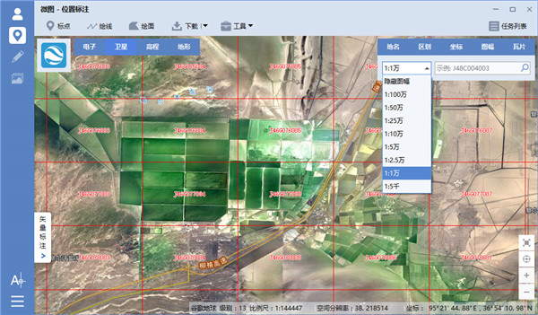 支持1:100万、1:50万、1:25万、1:10万、1:5万、1:2.5万、1:1万和1:5千等国家标准分幅图幅下载,如下图所示