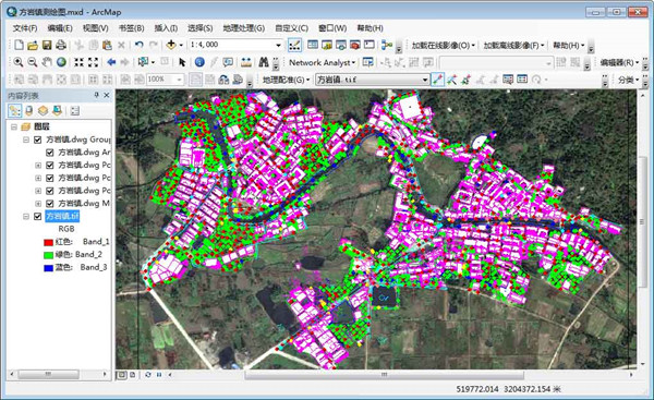 下载的影像数据经过投影转换之后,可以与西安80的矢量数据完美叠加,效果如下图所示
