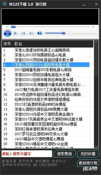 ik123是比较有名的DJ舞曲网站,不过很多用户感觉下载不太太方便,这里KK下载站提供大家的是可以免费下载ik123网站上的舞曲,也支持在线播放的一款ik123歌曲下载器,有需要的朋友可以下载使用。