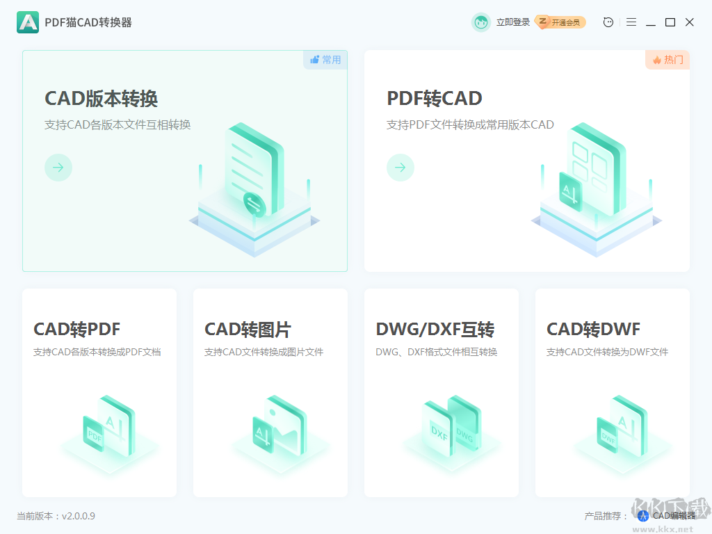 《PDF猫CAD转换器》是一款功能强力的CAD格式转换工具,支持CAD转PDF等多项转换功能。使用PDF猫CAD转换器支持dwg转pdf、dxf转pdf,一键批量转换CAD转PDF文件。可以自由选择输出的CAD版本,满足用户的CAD图纸转换需求!有需要的朋友不要错过,KK下载站推荐大家下载体验!