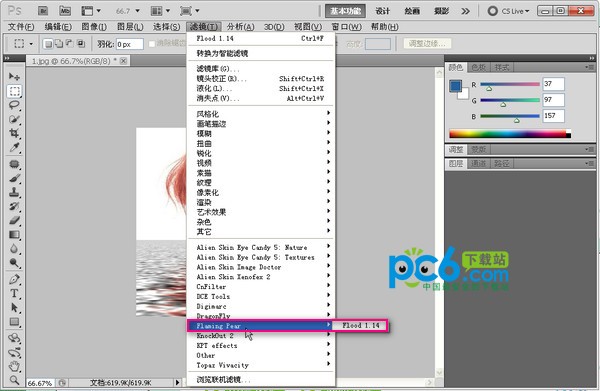 1、将从本站下载的压缩包文件进行解压,在解压出来的文件夹中找到“Flood倒影滤镜”文件夹。 2、在Photoshop安装目录中打开Plug-ins文件夹,将“Flood倒影滤镜”文件夹中的文件全部复制到该文件夹中。 3、之后打开Photoshop,此时就可以在“滤镜”选项中看到Flood了。