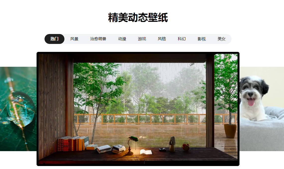 2.十大分类:随心选十大分类:小清新、动漫、明星、美女、风景、爱情、萌宠、影视、汽车,海量壁纸可供您选择